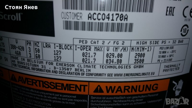 Хладилен компресор Copeland - ZS75K4E-TWD-551, снимка 1 - Стругове - 31981134 Хладилен компресор Copeland - ZS75K4E-TWD-551, снимка 2 - Стругове - 31981134 Хладилен компресор Copeland - ZS75K4E-TWD-551, снимка 3 - Стругове - 31981134 Хладилен компресор Copeland - ZS75K4E-TWD-551, снимка 4 - Стругове - 31981134 Хладилен компресор Copeland - ZS75K4E-TWD-551, снимка 5 - Стругове - 31981134 Хладилен компресор Copeland - ZS75K4E-TWD-551, снимка 6 - Стругове - 31981134 Хладилен компресор Copeland - ZS75K4E-TWD-551, снимка 7 - Стругове - 31981134 Хладилен компресор Copeland - ZS75K4E-TWD-551, снимка 8 - Стругове - 31981134 Хладилен компресор Copeland - ZS75K4E-TWD-551, снимка 9 - Стругове - 31981134 1/9