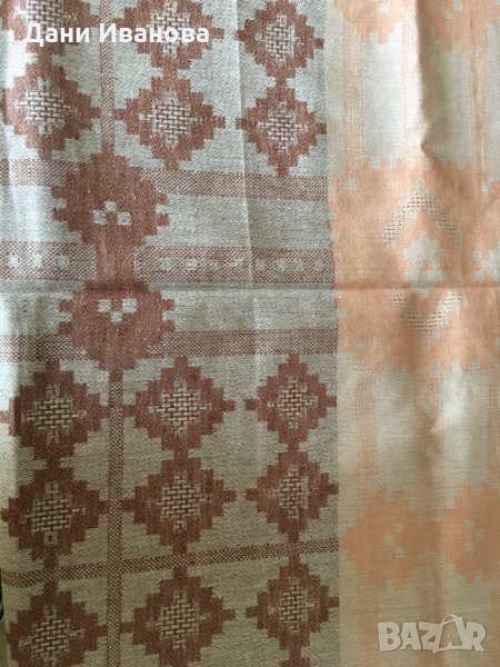 цветен ленен жакард в прасковена - кафява гама (прасковена основна част и по-тъмен бордюр)размер 173 х 143 см.