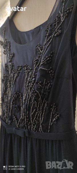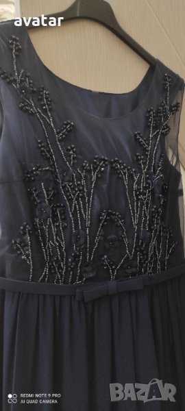 Продавам официална рокля, елегантна и стилна, тъмносин цвят, подходяща за тържества и събития.