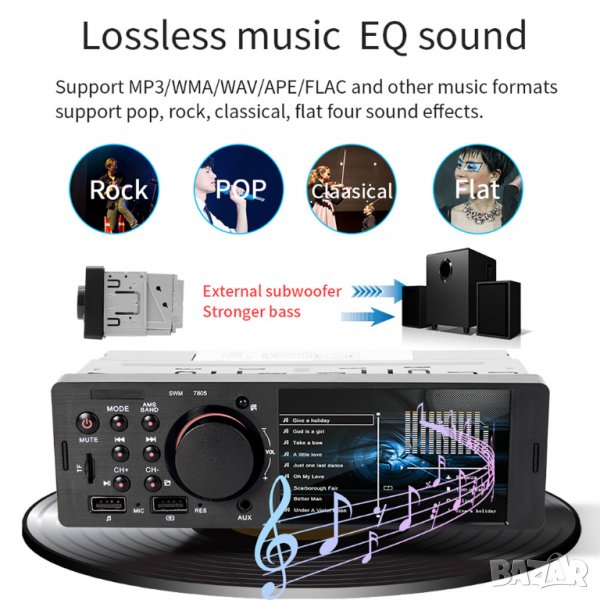 6.EQ звук: Поддръжка на MP3 / WMA / WAV / APE / FLAC и други музикални формати, поддръжка на Pop / Rock / Classical / Flat четири звукови ефекта