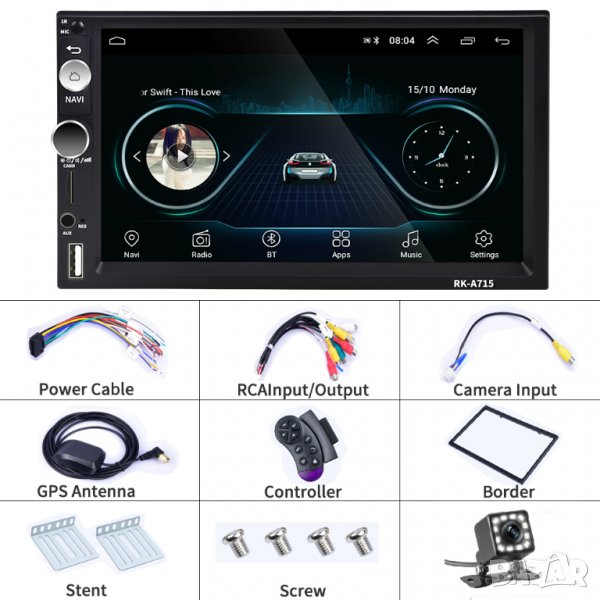 Всички функции и екстри с качествен звук! 7-инчов голям супер екран.