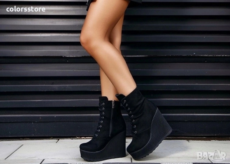 Боти на платформа - черен велур - NO6
