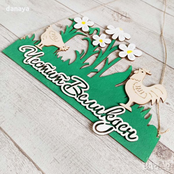 1989 Дървена великденска украса за стена Табела Честит Великден → Обява 31997022
