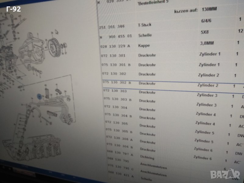 075130302B**NEU**VAG**Дизелова тръба - LT / 2.4D / 1S, ACL, ACT / Цилиндър 2