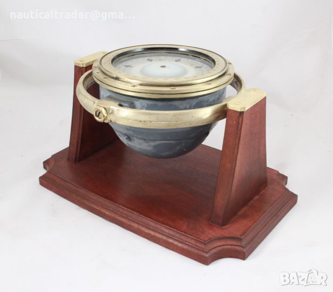 Магнитен корабен компас от месинг произведен 1960 г. за ВМФ на СССР г.,вис.185мм.,Тегло компаса 9.3 кг.,.,вис 130 мм.,ф – 130мм.,основа от махаогн.