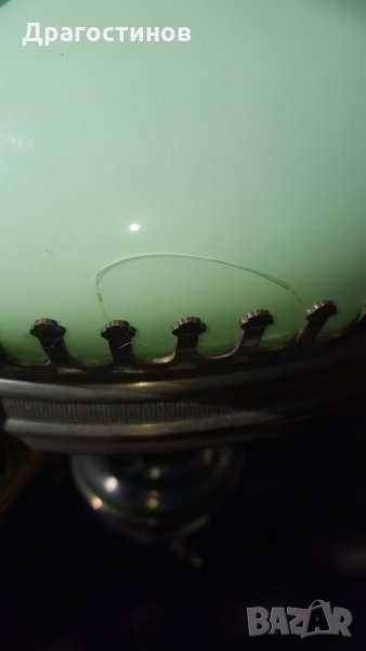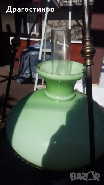 Височина-70см.широчина в най широката част-34см. Лампено шише+абажур/има пукнатина вижте снимката/.