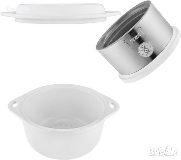 Благодарение на керамичната купа, парите са 100% на BPA и гарантират твърдост на хранителните продукти. Освен това не остават подобрители на вкуса - така че зеленчуците ви няма да имат вкус на рибата от предния ден - и можете просто да поставите купата в съдомиялната машина за почистване.