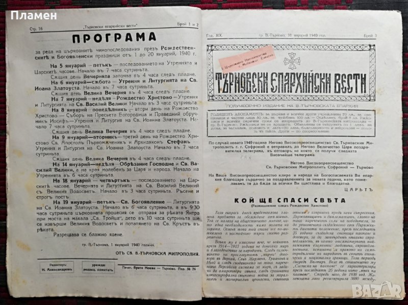 Търновски Епархийски вести. Брой 1-22 / 1940 .Полумесечно издание на Велико-Търновсата Епархия (Годишник с много неразрязани страници) -85 лв. цена общо.