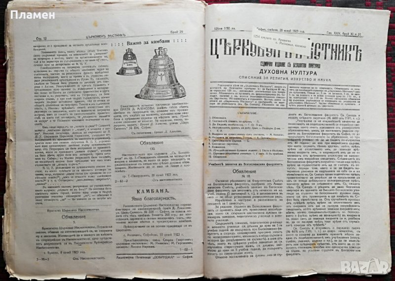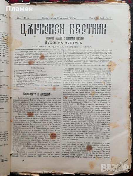 Църковен Вестник. Брой 4-31 / 1923. (С много неразрязани страници) -50 лв. цена общо.