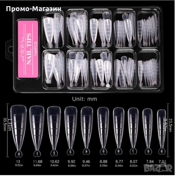 Остри форми за изграждане на поли гел / Polygel - 100бр → Обява 32018032