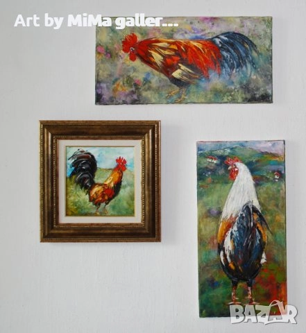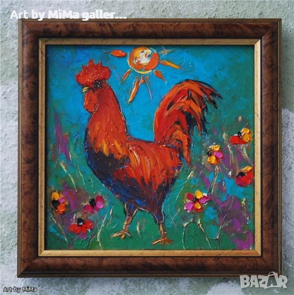 Петли, петлета, петел, петле, Мима / Art by MiMa, картина, rooster oil on canvas painting → Обява 32023922
