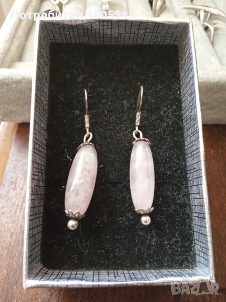 Обеци от сребро 925 дизайнерски обеци с розов кварц → Обява 32024036