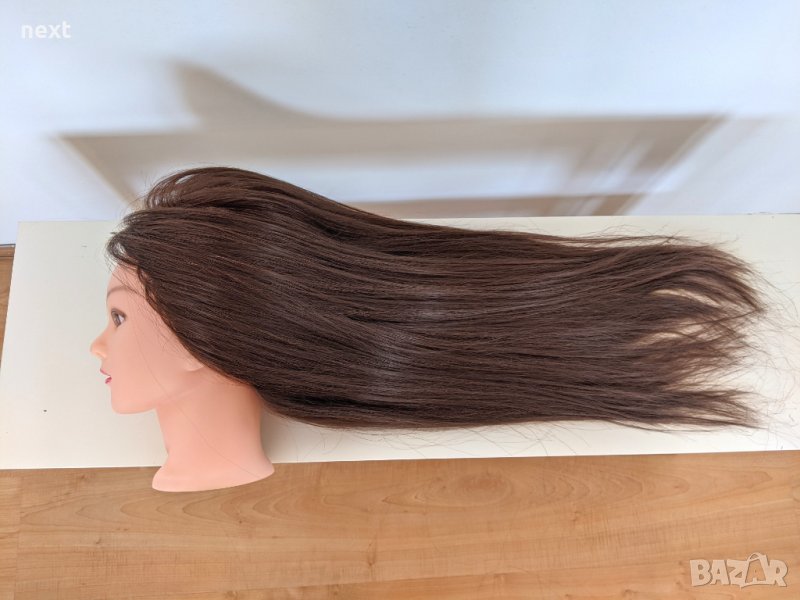 + НОВ манекен с ЕСТЕСТВЕНА коса за фризьорско обучение (тренировка) + СТОЙКА и фризьорски АКСЕСОАРИ