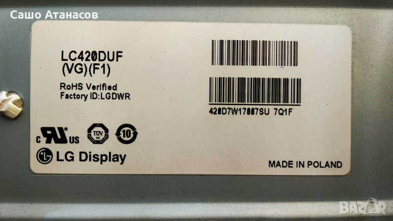 Panasonic TX-42ASF657 с дефектен Main Board , TNPA6011 1P , TNPH1077 1A , 6870C-0482B , LC420DUF