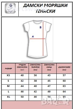 Нова класическа моряшка дамска тениска с къс ръкав и овално деколте, произведена в България , изработена от висококачествен 100% пениран памук. Подходяща за носене както в горещите летни дни навън, така и вкъщи пред телевизора. Материята не позволява да се измачка, което я прави изключително ценена и желана от нашите дългогодишни клиенти. Нашите тениски се перат на не повече от 40 градуса и при пране не се свиват.