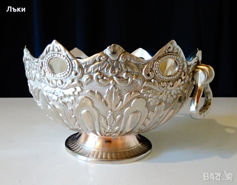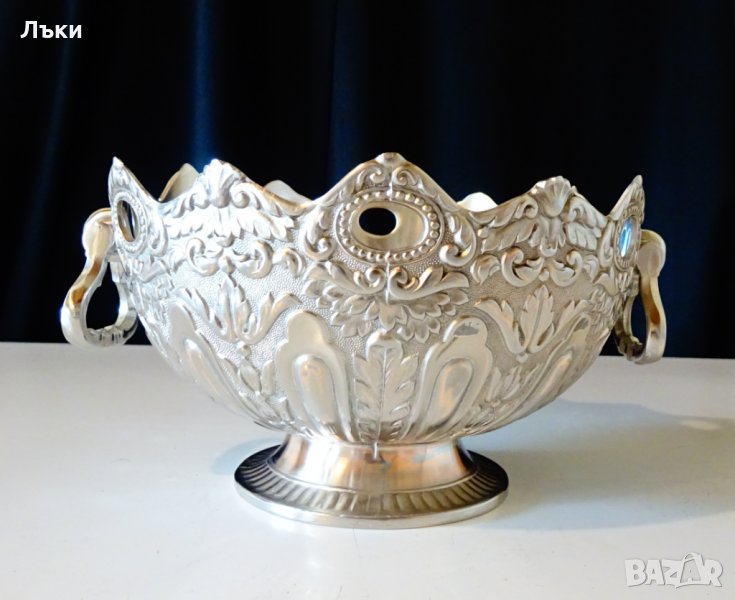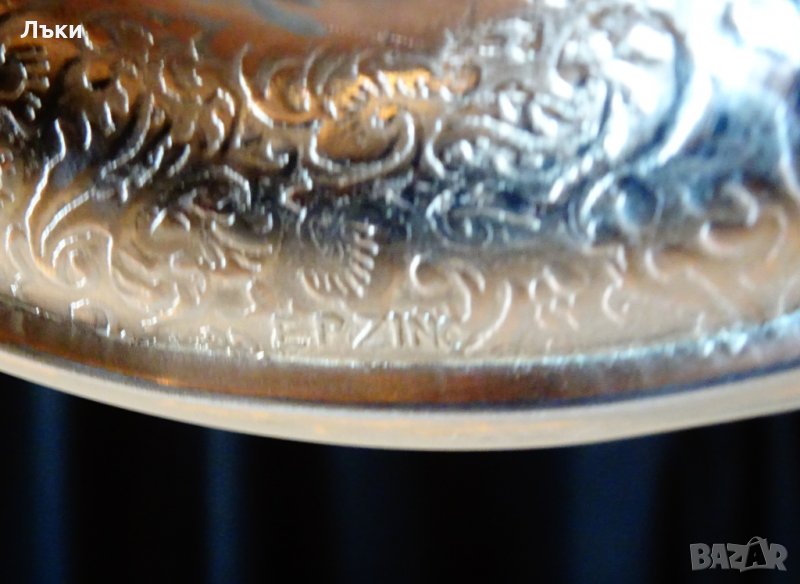 ръчна изработка от цинк,дебело посребрена с висока проба сребро.Маркирана EP.Zinc.Декорирана с разкошни