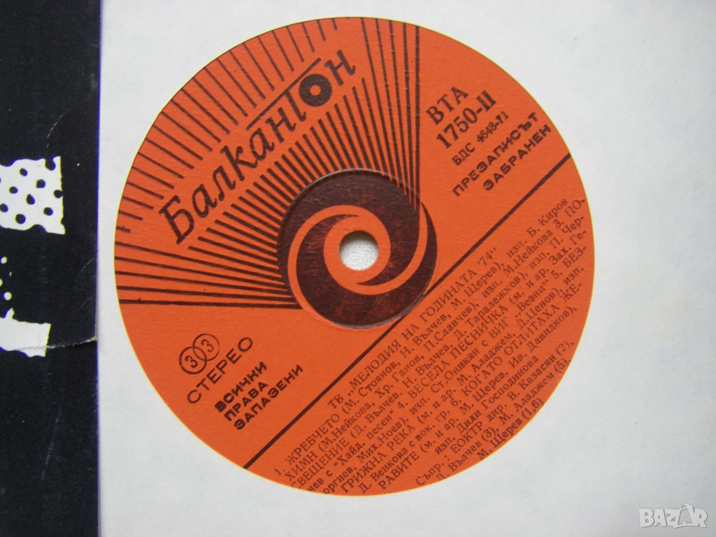 Грамофонна плоча - ВТА 1750 - Българска телевизия. Мелодия на годината 74