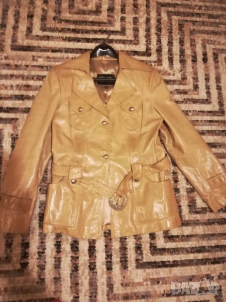 Ново е, цветът е приятно бежов, блед, естествена, тънка кожа. Рамене 40см,дължина 67см,ръкав 63см.дължина,гърди 94см,талия 88 см, надолу леко се разкроява до 100см. Малко ми е.