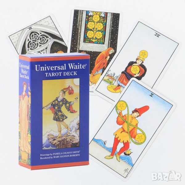 - 78 Таро карти - Universal Waite Tarot с хартиена книжка с указания на английски. Размерът им е 12см х 7см.