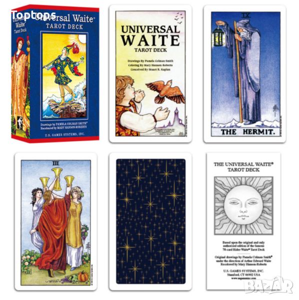 * Universal Waite Tarot е едно от класическите издания на най-известната и разпознаваема таро колода, за която 99% от хората се сещат като чуят таро.