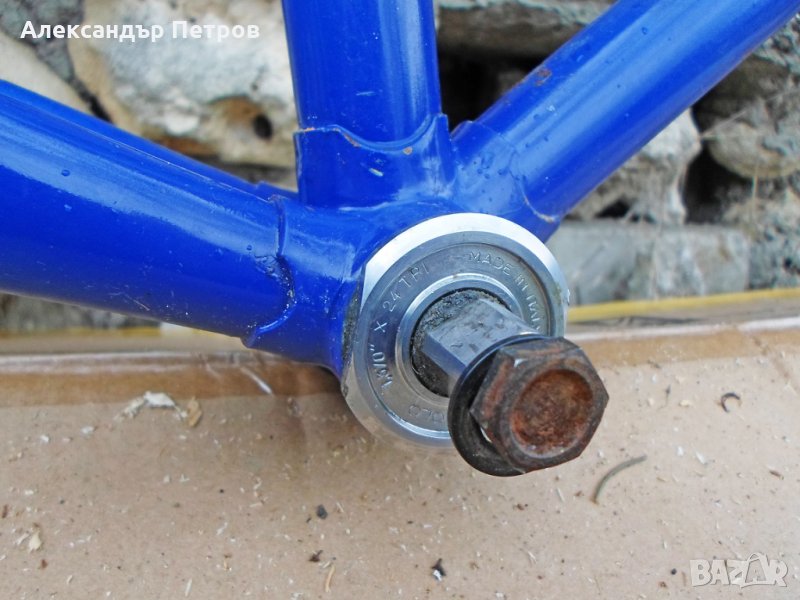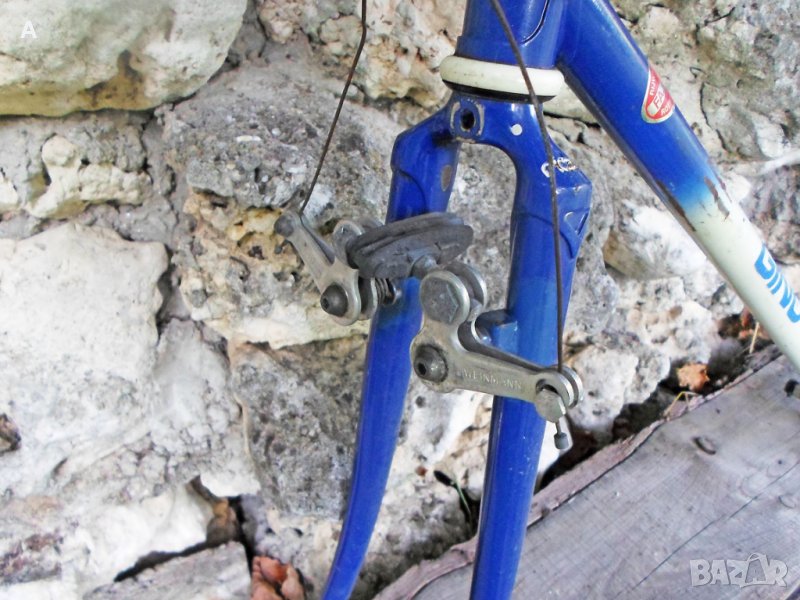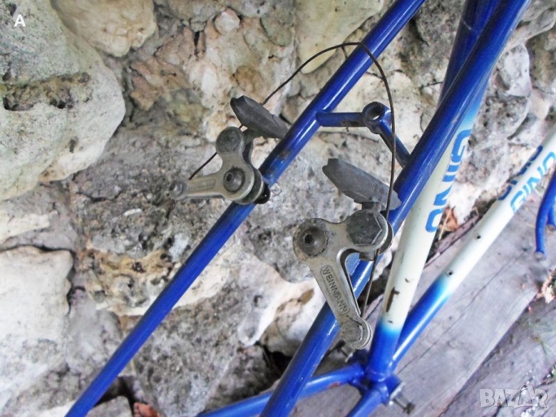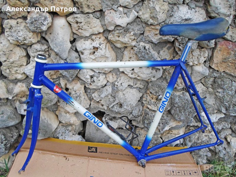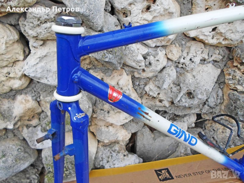 Ретро шосейна /циклокрос рамка, има пивоти за кантари спирачки/ С T 52 cm,C C 55 cm ,9 cm чело. Частични забележки по боята/поправими/, средно движение Campagnolo, Shimano чашки, седалково колче с размер 27 мм.GINO е магазин в Остенде /Белгия/.Подарък ретро шпайки 41 номер"Rider".