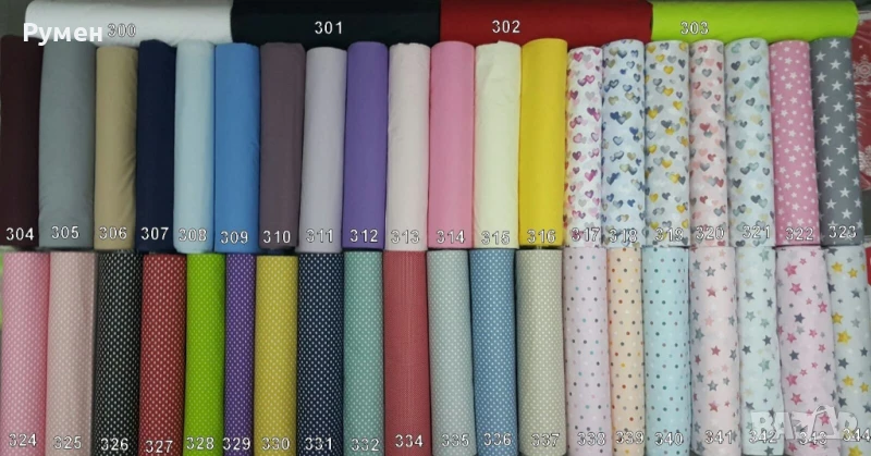 Десените с №Р1 до №Р22 са 100%памук едноцветни 4,99 лв/метър ширина 220 см