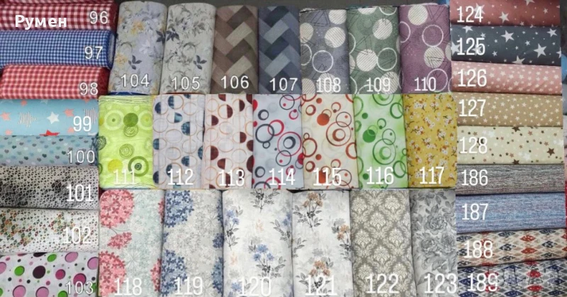 Десените от №1 до 191 са 100% памук щампа 4.49 лв/метър ширина на 220 см
