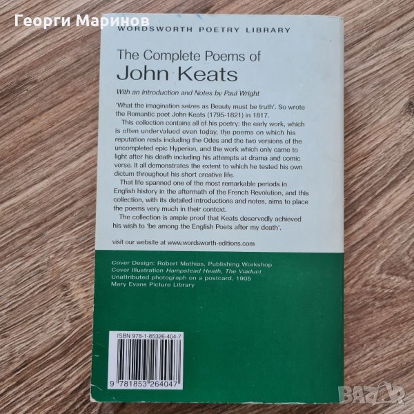 Петата книга е: The Complete Poems of JOHN KEATS. Книгата е в отлично състояние, няма измачкани, скъсани, надраскани или липсващи страници. Съдържа 512 стр. Размерите са 19,5 cm x 12,5 cm.
