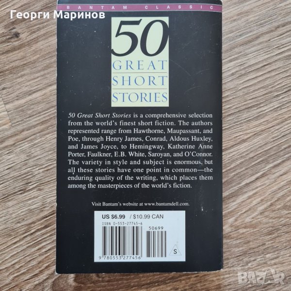 Седмата книга е: 50 GREAT SHORT STORIES, с различни автори. Книгата е редактирана от MILTON CRANE. Книгата е в отлично състояние, няма измачкани, скъсани, надраскани или липсващи страници. Съдържа 571 стр. Размерите са 17,5cm x 10,5 cm.