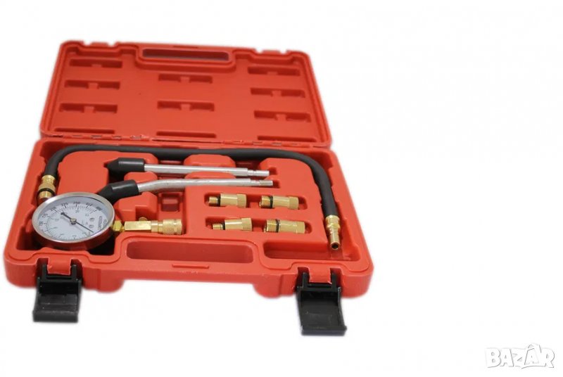 Този комплект е предназначен за поредица от многократни измервания на компресията в бензинови двигатели, манометъра има страничен клапан за незабавно освобождаване на налягането.