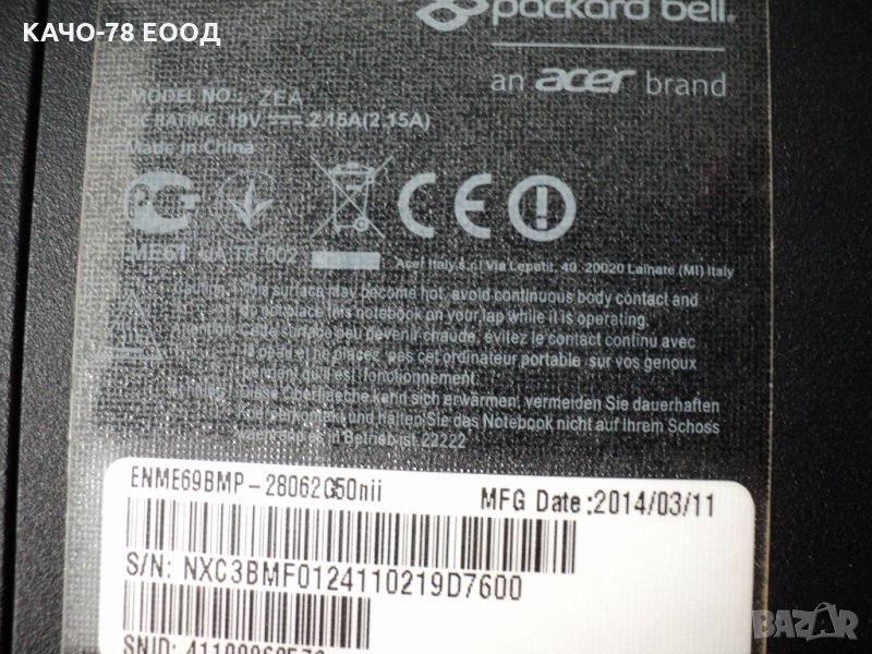 Лаптоп Packard Bell - ENME69BMP, със следните параметри: