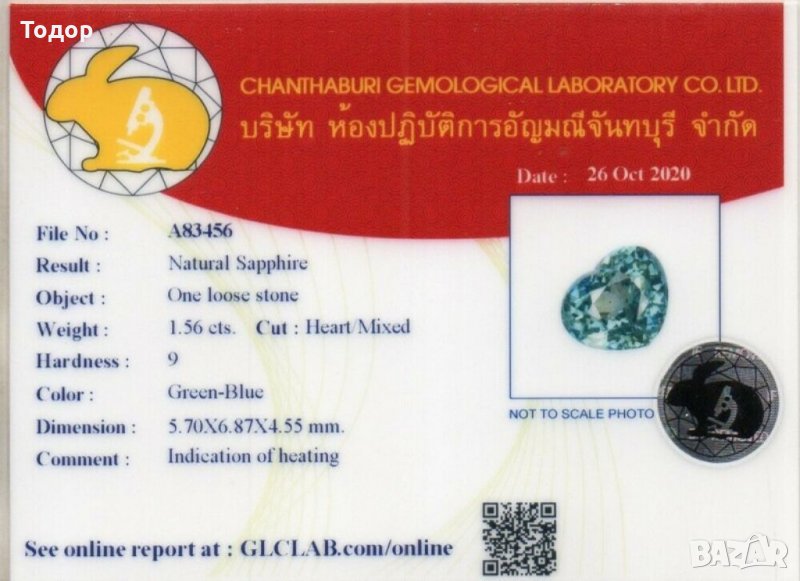 Сапфир със сертификат 1.56 карата, снимка 1 - Други - 32077263 Сапфир със сертификат 1.56 карата, снимка 2 - Други - 32077263 1/2