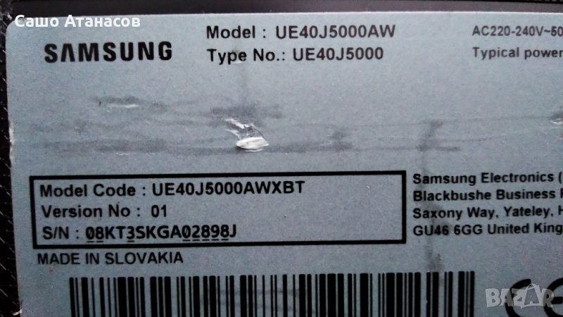 SAMSUNG UE40J5000AW със счупена матрица ,BN41-02098B ,BN44-00852A ,V400HJ6-PE1 ,GY-JJ040BGNV2H