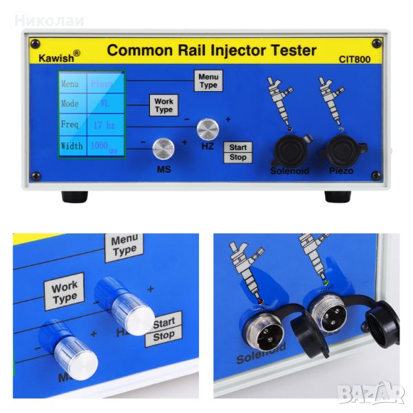 Стенд за комън рейл, пиезо, обикновенни дизелови дюзи, работи с регулатори на налягане на комън рейл системи,както и с бензинови дюзи,които могат да се почистват с ултразвукова вана лесен за работа.