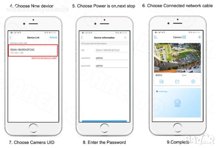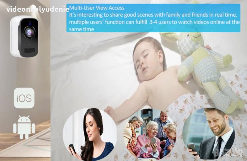 Един потребител може да добави повече от една камера, също така и един камера може да е наблюдавана от повече потребители. Може да се добавя от 4 потребителя и да се гледа едновременно от 4 от тях!