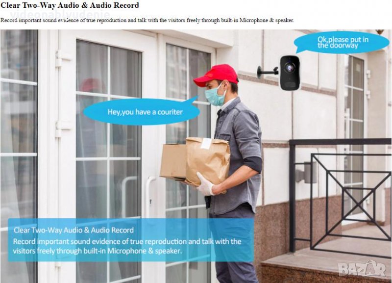 Без допълнително окабеляване, чрез захранване от ултра мощните презареждаеми модел 18650 батерии и безжичната Wi-Fi връзка, тази камерата e подходяща за инсталация и монтаж навсякъде във вашия дом, градина, офис, магазин или друг обект.