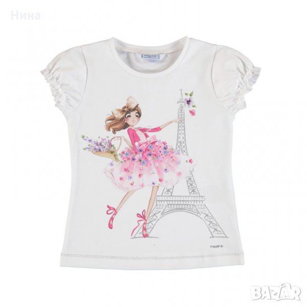 Тениска Mayoral със страхотна апликация и супер качествена материя. Размери от 2 до 9 години вкл. За още моделчета разгледайте и останалите обяви в профила ми.