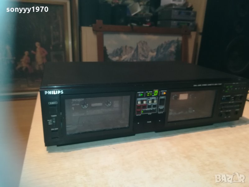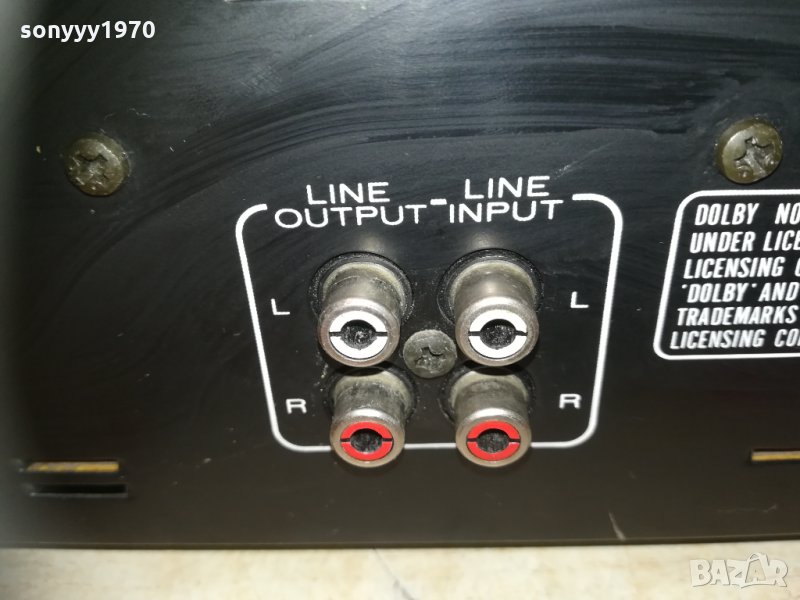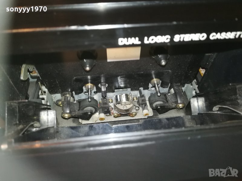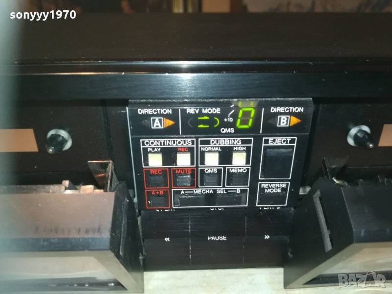 Typical front loading double cassette deck with the cassette compartiment located on the left side of the deck. Tape eject is operated mechanically and the cassette needs to be placed with the side to be played facing forward in the cassette well.