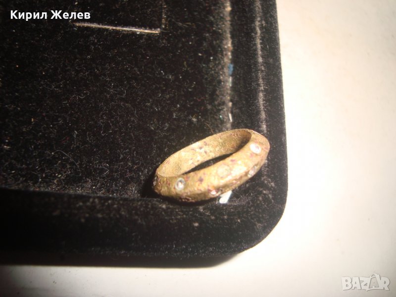 СТАРА РЪЧНО РАБОТЕНА МЕДНО-БРОНЗОВА ХАЛКА с ИКРУСТИРАНИ КАМЪНИ ЦИРКОН ВИНТИДЖ ПРЪСТЕН 20960
