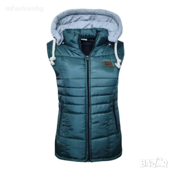 Дамски елек с подвижна качулка.