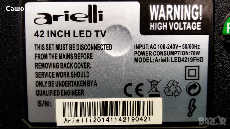 Arielli LED4219FHD със счупена матрица ,CV9202H-A39 ,6870C-0469A ,200-GJR-LE32190-0H ,CX420DLEDM → Обява 32101609