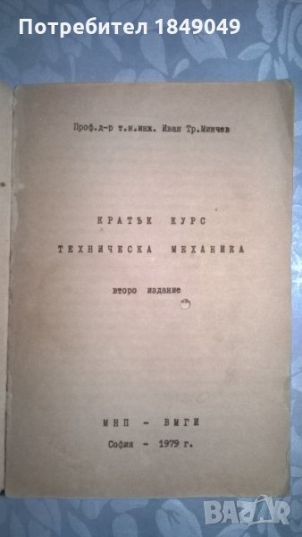 Иван Тр.Минчев "Кратък курс Техническа механика" - 5 лв./1979г.,меки корици/.
