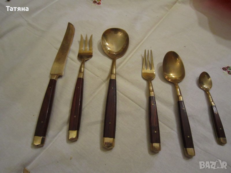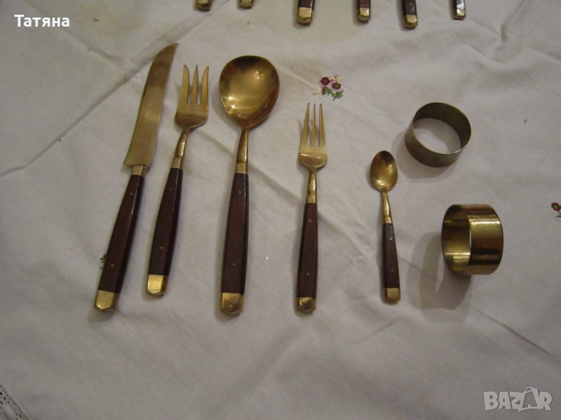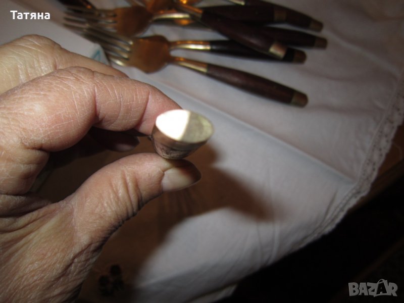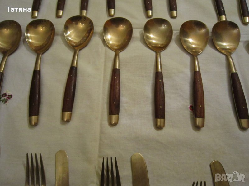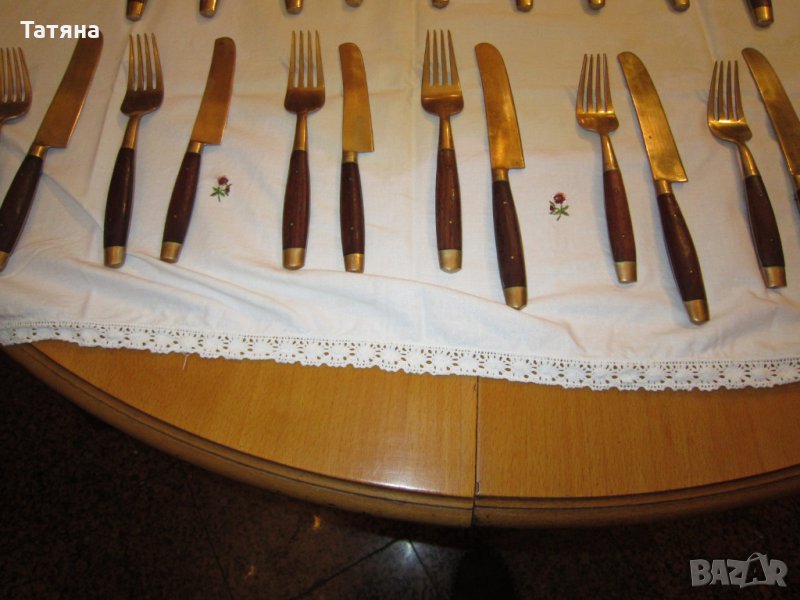 ЕДИНИЧНИ БРОЙКИ -снимка 8,9 различен модел от горните.ТЕ са по два ножа ,две вилици и две лъжици за основно и по-малки - два броя вил.15см;2бр лъжица- 15см и 2 малки лъжици-10,5см и 2 пръстена за салфетки.ЦЕНА -10 € за брой