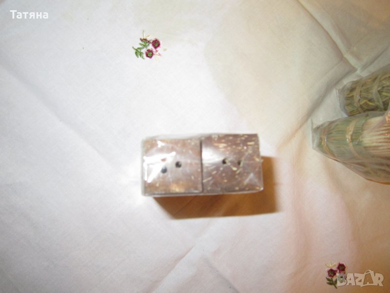 Солници -2бр от дърво /КОНУСИ/Цена за комплекта 12 € ;Клечки за зъби 2компл. по 4 € за 1брой/в съд от