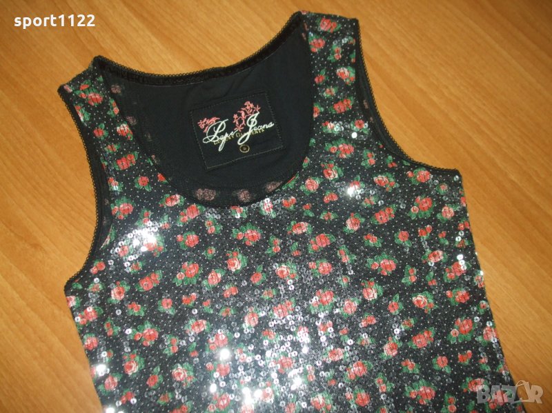 Много красив оригинален дамски потник с пайети Pepe Jeans, неупотребяван, без хартиен етикет. Състав 90% вискоза, 10% еластан.