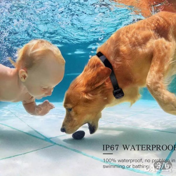 Водоустойчив на намокряне приемник клас IP67, вашето куче може да плува във водата или да се къпе с него.Дълга каишка подходяща както за малки така и за големи кучета