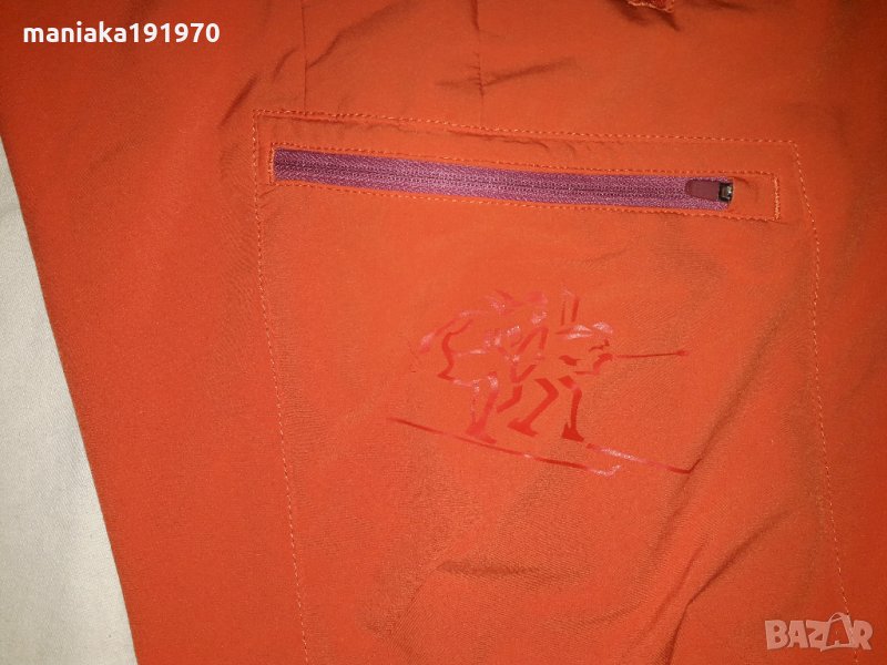 Размер по етикет дамско (L),панталона може да се носи и като мъжко (М), не е плитък в чатала и е с мъжко закопчване. Материята е тънък софтшел, позволяващ всякакви движения, разпъващ се в четери посоки. Панталони за туризъм и походи, бързо съхнеща стреч материя, дишащ и ветроустойчив.