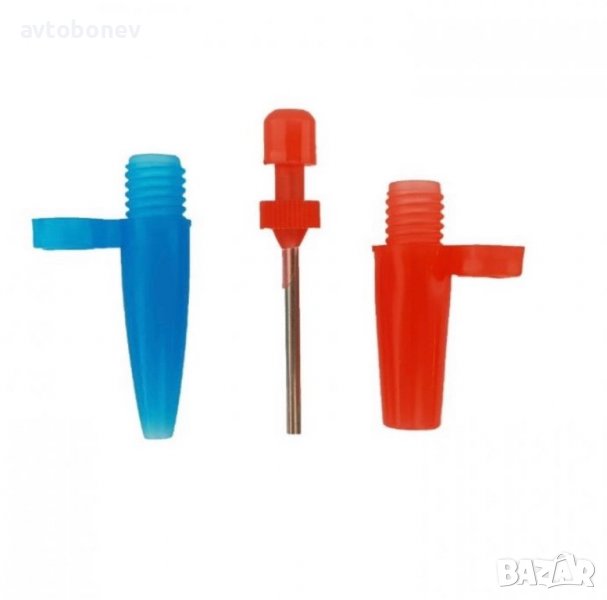 - Комплекта включва три накрайника за помпене: топки, вело гуми и други.