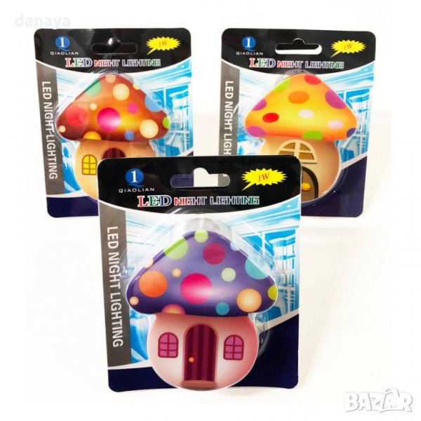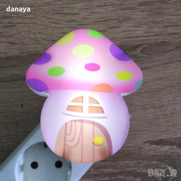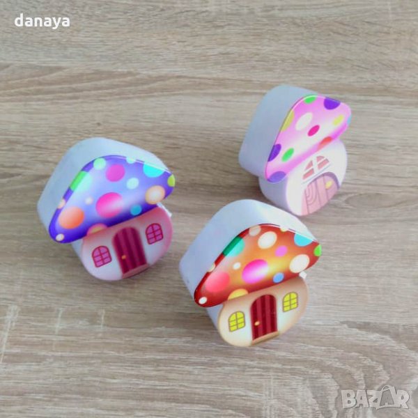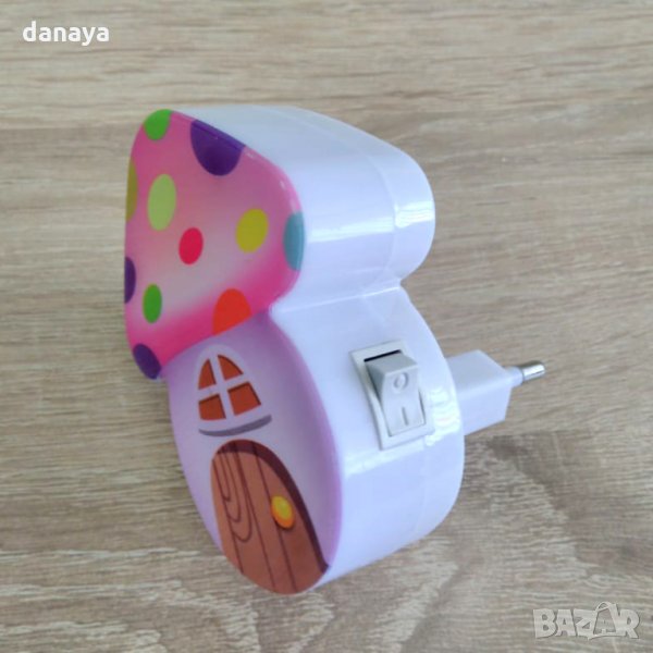 Енергоспестяваща детска нощна лед лампа за стена с копче за включване и изключване. Лед лампа за контакт с форма на къщичка гъбка в три варианта. Симпатична нощна лед лампичка, идеална за всяко детско помещение. Специално разработена, за да пести електроенергия.