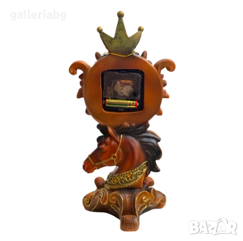 часовник кон, декоративен часовник, настолен часовник, часовник с кон, часовник с корона, часовник за дома, часовник за хол, часовник за офис, кварцов часовник, винтидж часовник, луксозен часовник, декорация за хол, декорация за офис, декорация за дома, статуетка кон, фигура кон, подарък за любител на коне, подарък за дом, оригинален подарък, интериорна декорация